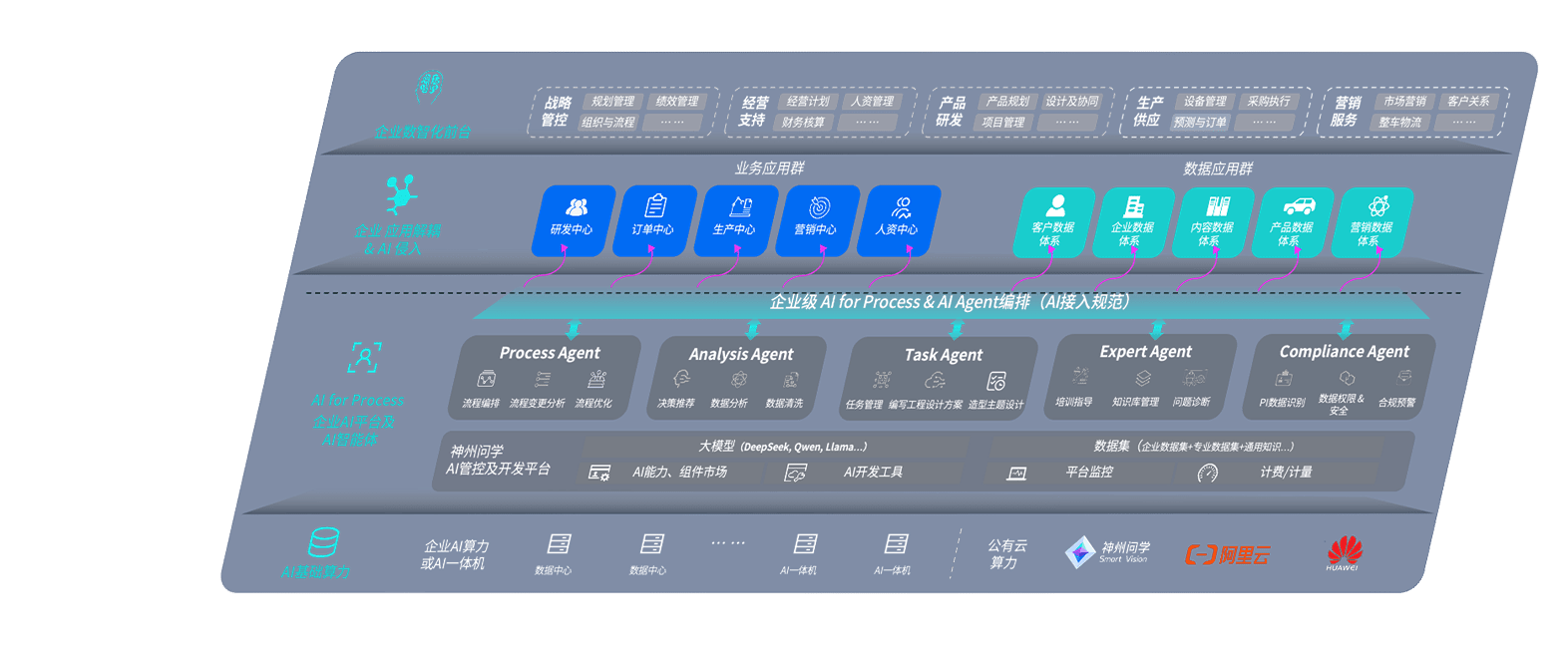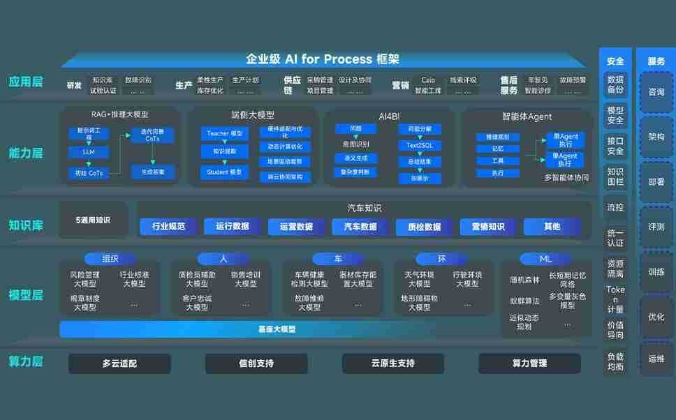 端到端的一站式AI工作空间深度融合了从企业战略规划到日常经营的全流程业务板块,,,,定向解决车企内部领域多、、部门多、、、链条长、、、场景碎片化等难题,,,支持车企快速构建以AI为核心的生产力写作体系,,实现任务执行与AI能力的无缝集成与交互